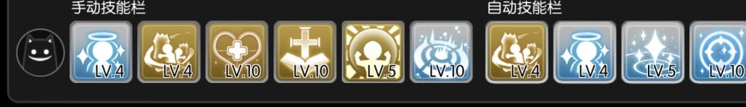 自动技能栏:普通攻击,天使之赐福,幸运之颂歌。