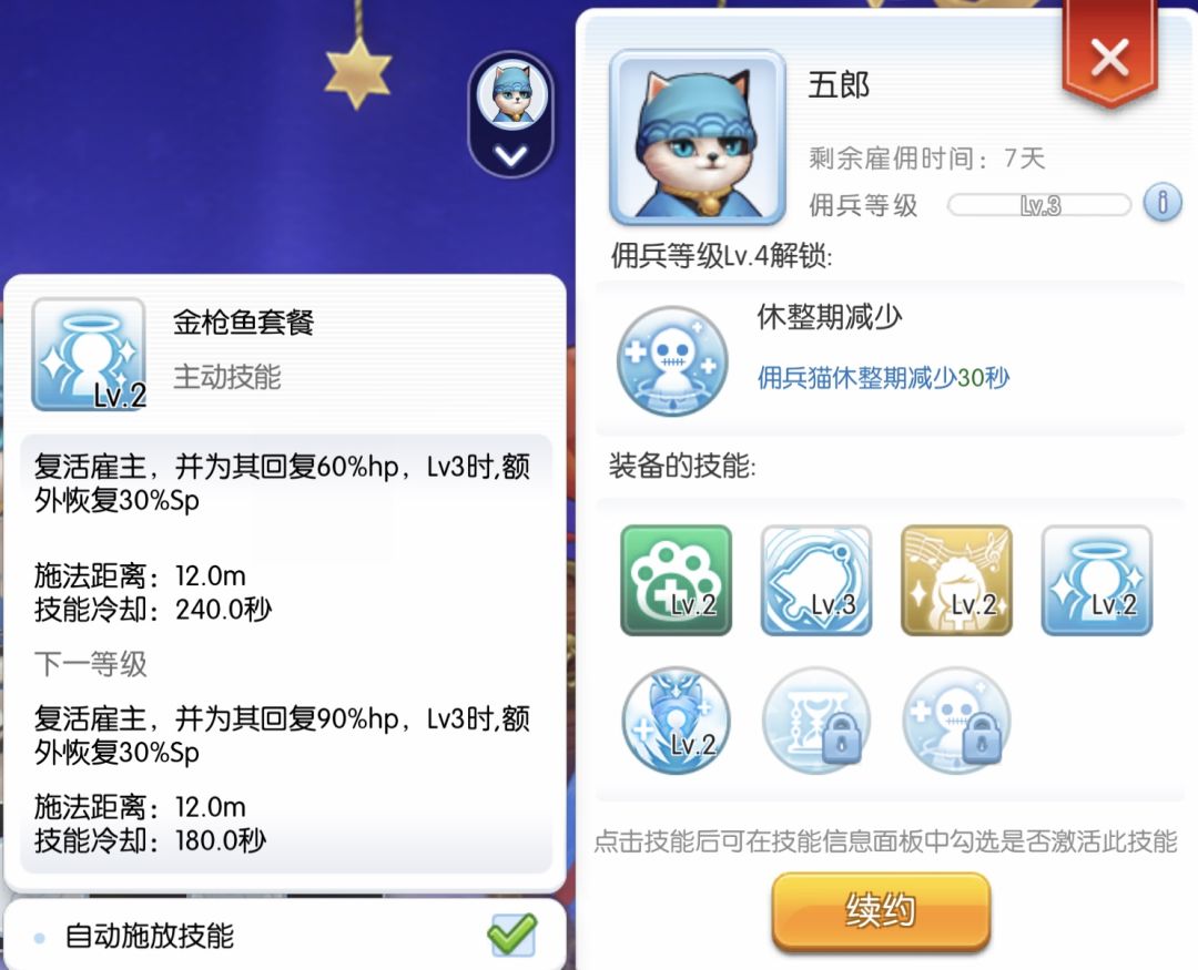 这个技能对应的是五郎的复活,加上新手送了人鱼,就有两个复活了。五郎会陪着自己一辈子,其他技能也点满哦。