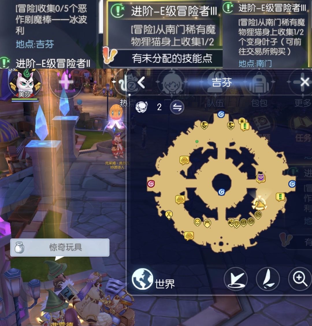 这时候最好野外MINI打了狸猫,拿到2个变身树叶,或者交易所购买,去解锁E级冒险家。