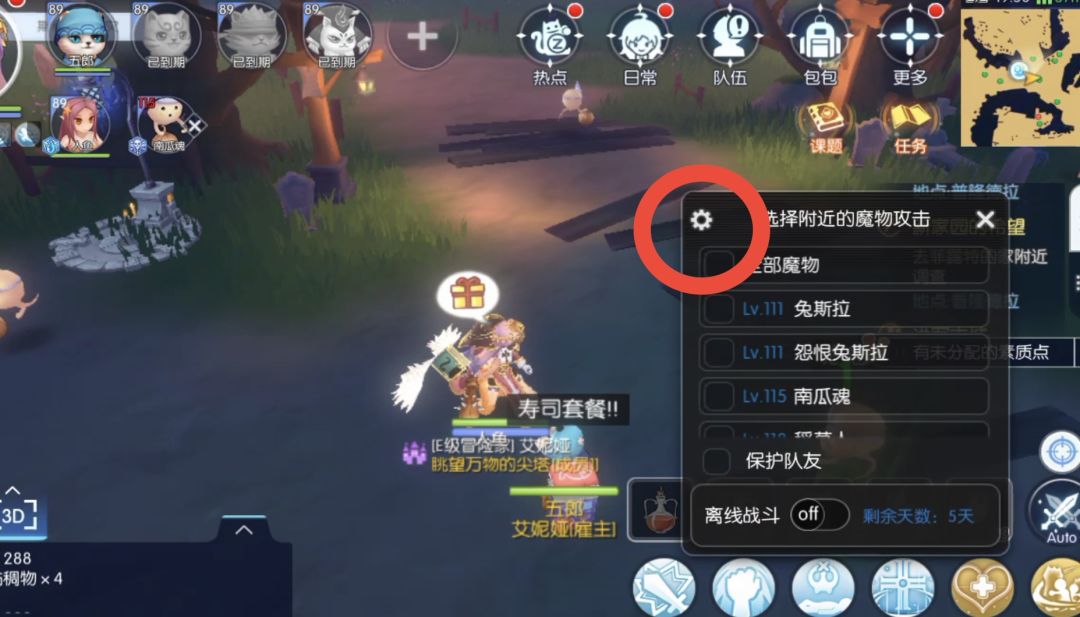 这时候我们去做西门主线任务,如果打蝗虫的人多那就去迷藏森林(西门12点)。