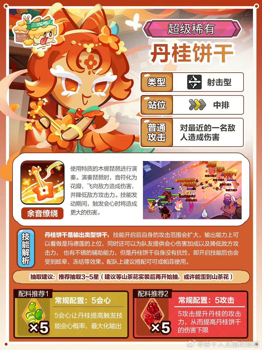 丹桂饼干测评,丹桂是一个纯输出饼干,配合斗篷的话在竞技场能打出很爆炸的伤害,但是自身缺少对控制的抵抗能力,阵容配队上需要搭配可可或者帕菲使用。