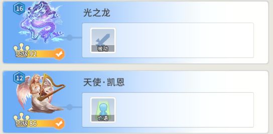 下面介绍一下光之龙和天使*凯恩。这两个卡大家应该都是15级,前期相当的好用。光之龙优点升级。也可以两个月亮左右交叉放置。