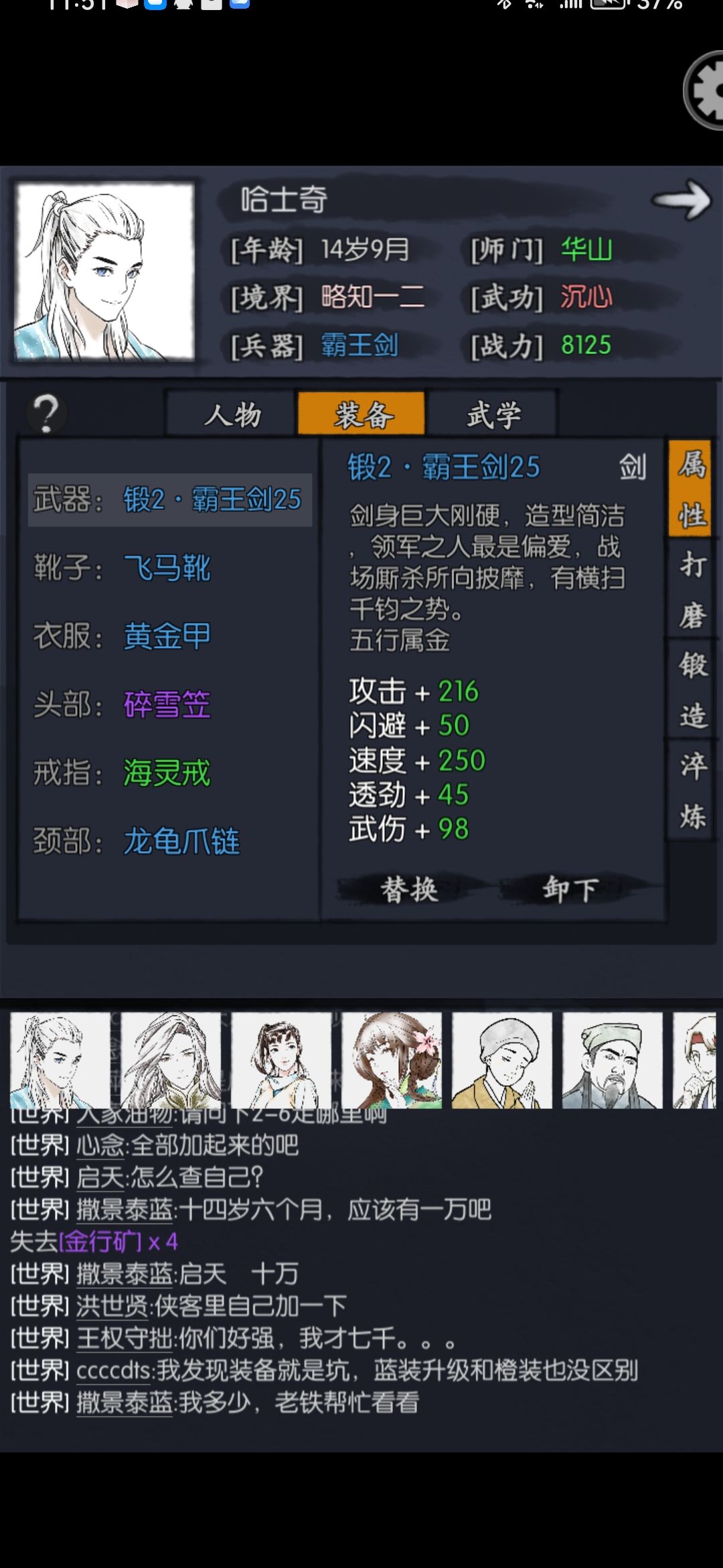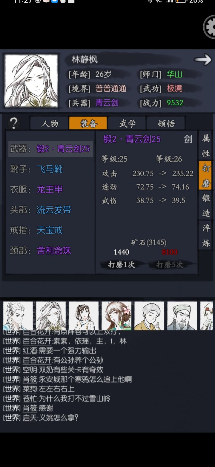 图四自答!先打磨25级后锻造过一次的霸王剑,可以看到数值明显变化了,但还不确定打磨和锻造的先后顺序有无成长变化!