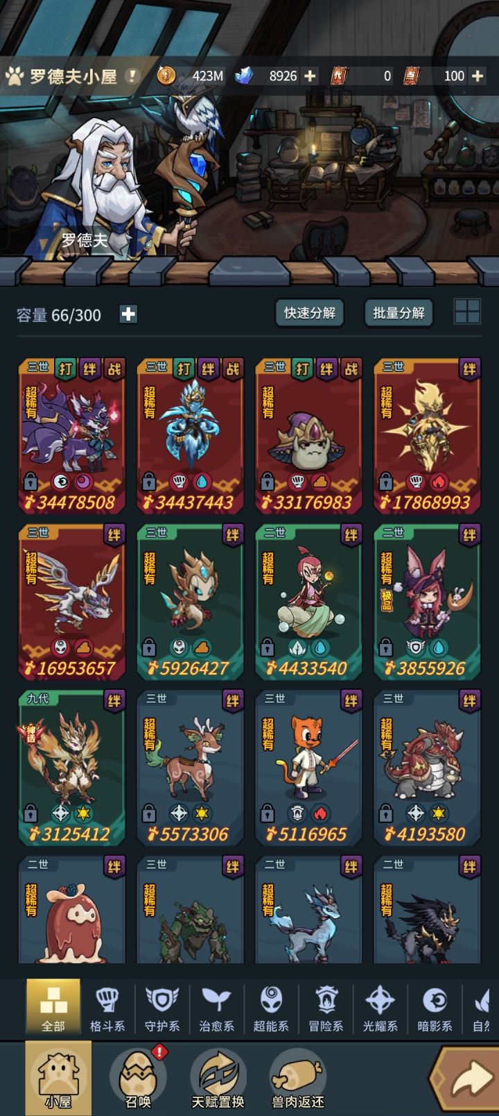 混沌塔光暗系的狐狸,光鹿,鲸鱼,妮妮,美食家,后面两个其他地方不太常用,所以可以视情况考虑培养