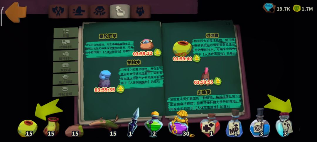 操作视频如下,我这里是先做的幼年材料魔药,所以要把植物从幼年→普通→老年