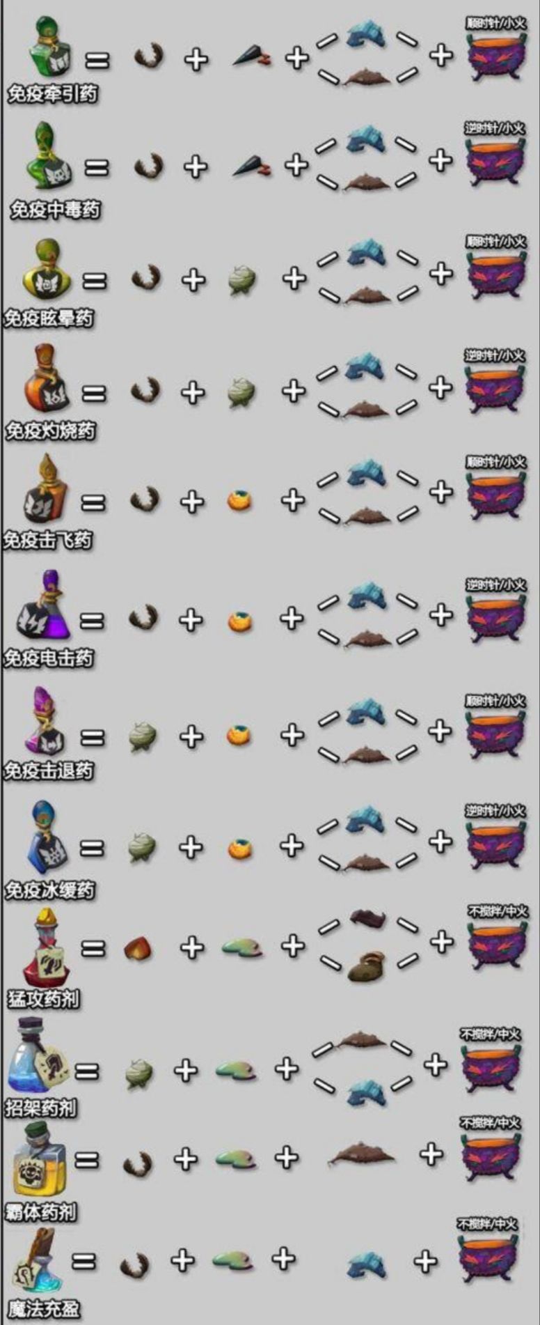 老年材料魔药配方如下,注意顺时针、逆时针、不搅拌和大小火