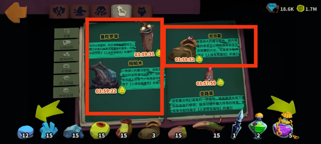 如果先做的幼年材料的魔药,那么我们需要把以下几个植物变成老年↓