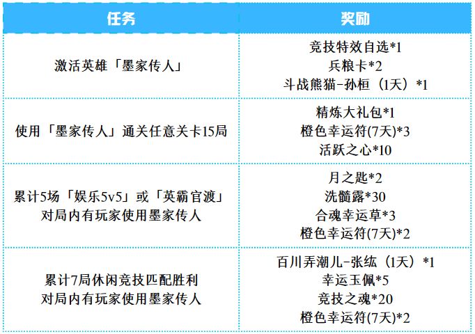 全新英雄墨家传人上线,完成相关新英雄活动得奖励~