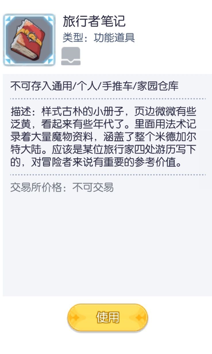 学习后会获得一个记事本,他的作用是用于存储当前角色的属性点,技能,装备栏、物品栏信息