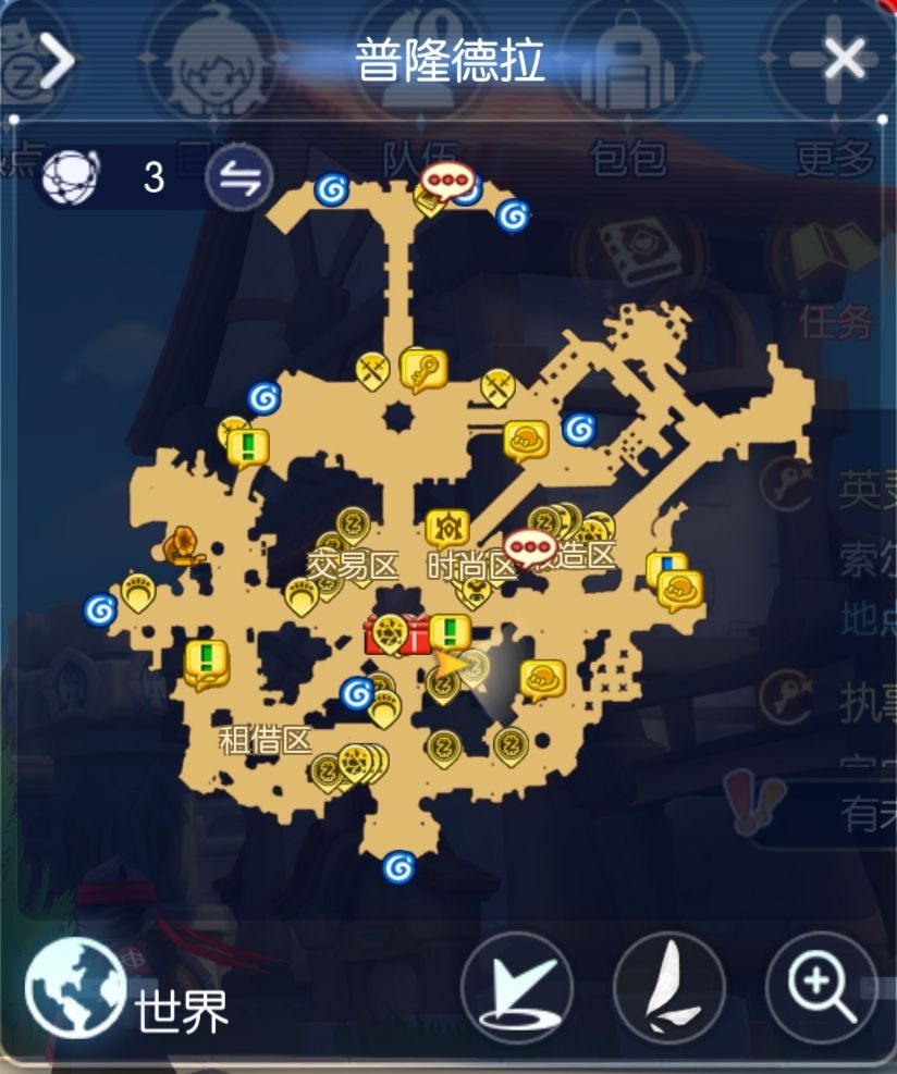 我的理解是这个没什么用,几乎可以忽略然后右边就是你所处地图的名字,比如我现在就是在普隆德拉了然后那个叉叉,懂得都懂哈