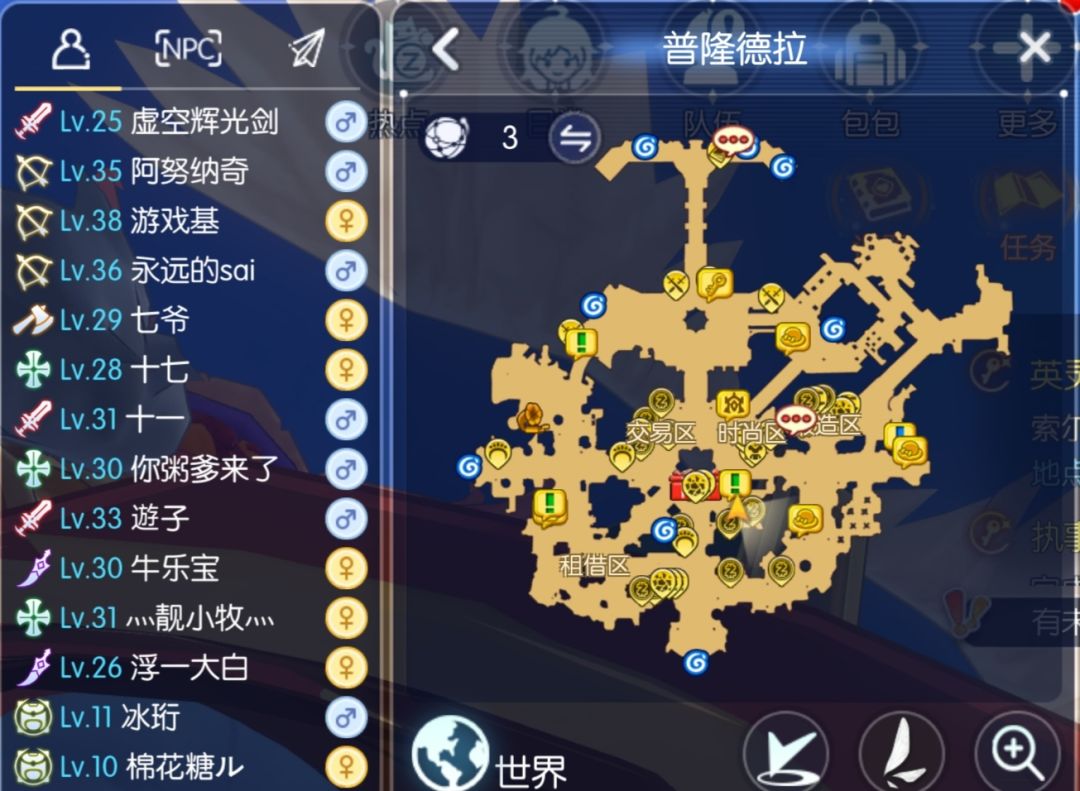 然后就是地图主体了,地图上的每个图标都有对应的意义或者对应的npc,对于萌新来说想记住很难,所以游戏也是想到了这一点,我们往下看
