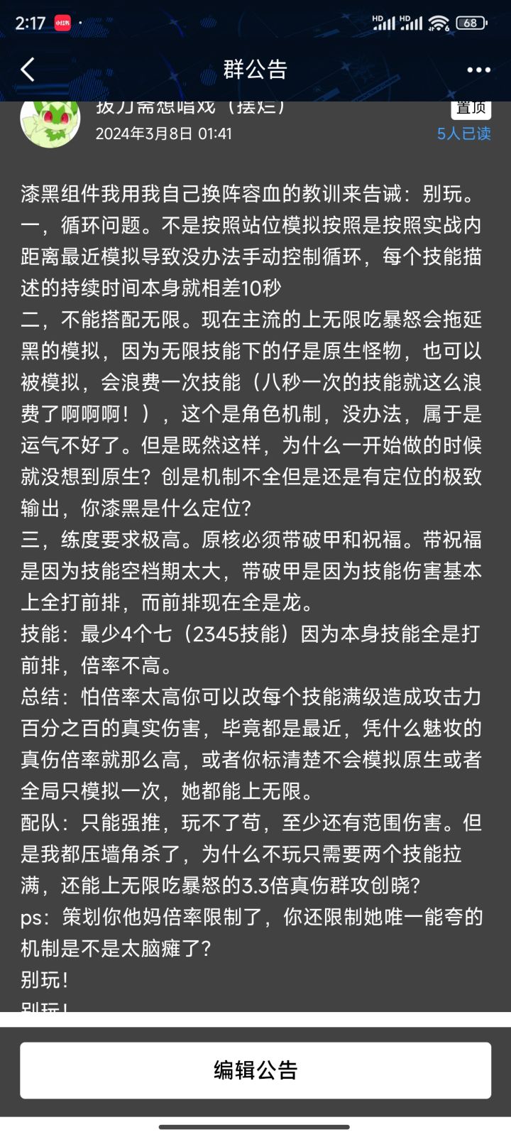 2,无法与♾️同时上场意味着攻击力不够,漆黑的技能通常情况下都是打前排的普通技能伤害,并非真伤。在这个腾龙遍地走的时代显得尤为刮痧。