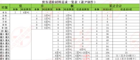 【武侠大明星】升星表,侠客进阶所需材料一览表(附全套兑换码)