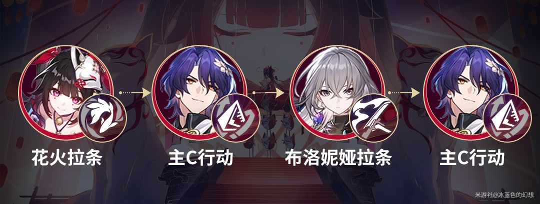 大家可以先简单想一下花火+布洛妮娅的拉条,可以让主C一个轮多动几次?