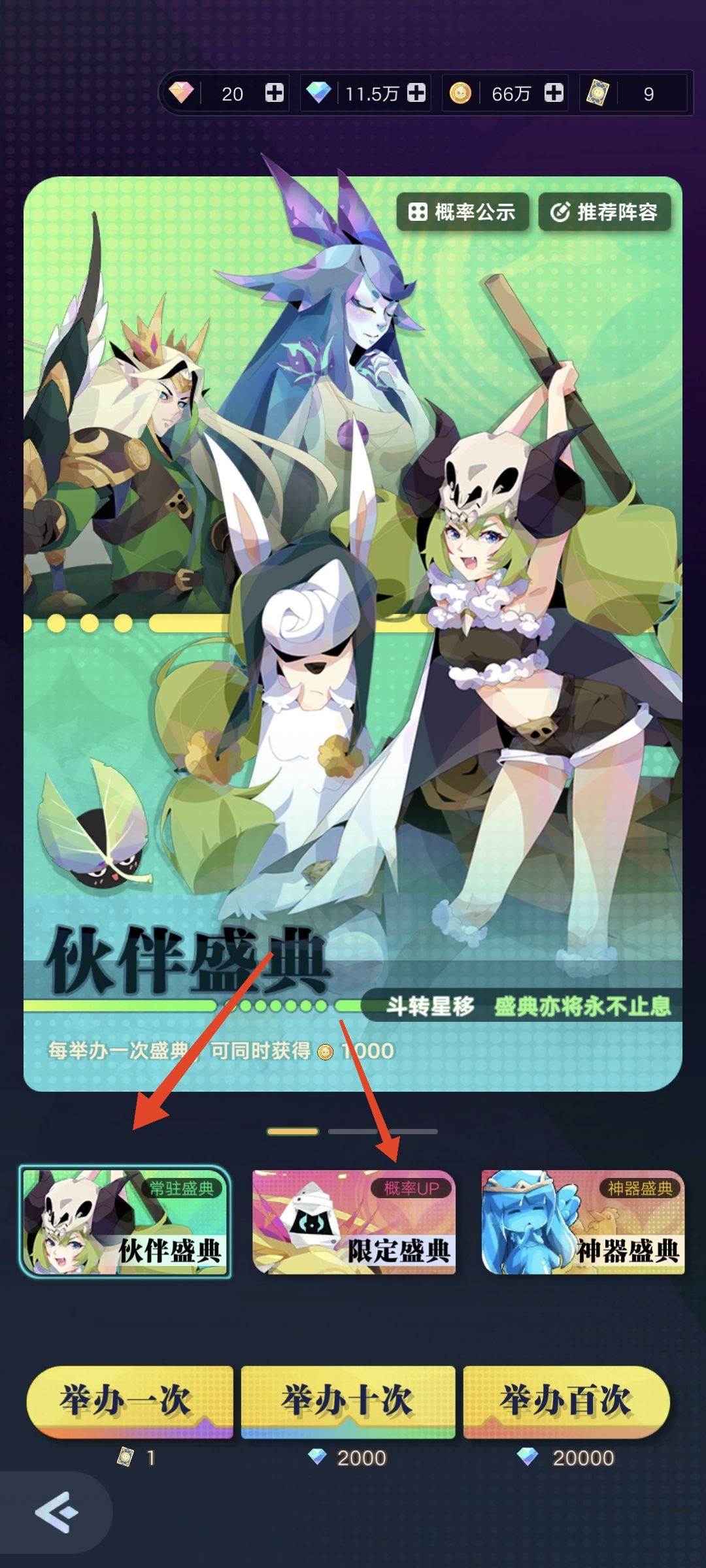 首先进游戏后各位萌新玩家会发现燃灯给送了一“大波”钻石,别慌,钻石里没毒,燃灯是带慈善家,前期新手福利会让玩家玩的很舒服,完全想不起来要充钱的事,然后先推推图。等商店开放后,进商店先把9900钻100抽和990钻10抽的五折伙伴抽卡券给买了,这个时候进入伙伴盛典的玩家就会发现有一个普通池,一个概率up池。问问大佬如果本期up伙伴比较强力就在up池里先把他抽到ss2星(这时伙伴是5级技能,性价比较高),剩下的券再去普通池子抽,如果不强力直接普通池子抽即可。注意!抽卡券不够时也不建议钻石直接抽,因为推图、推剧情、过任务会获得很多券。