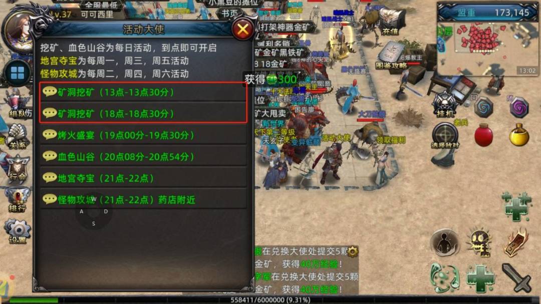 经验:挖矿获取的金矿可在主城【兑换大使】处兑换成经验,一天最多可兑换180万经验