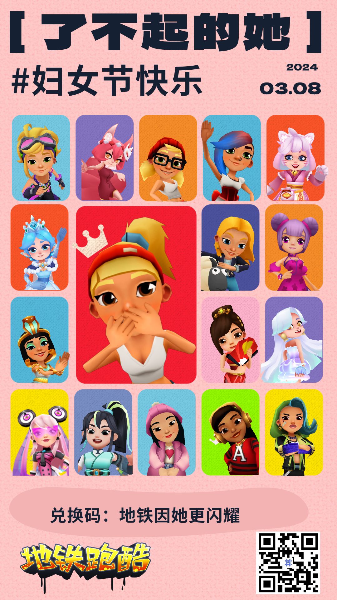 为了庆祝妇女节,跑酷君为大家准备了一份兑换码哦!