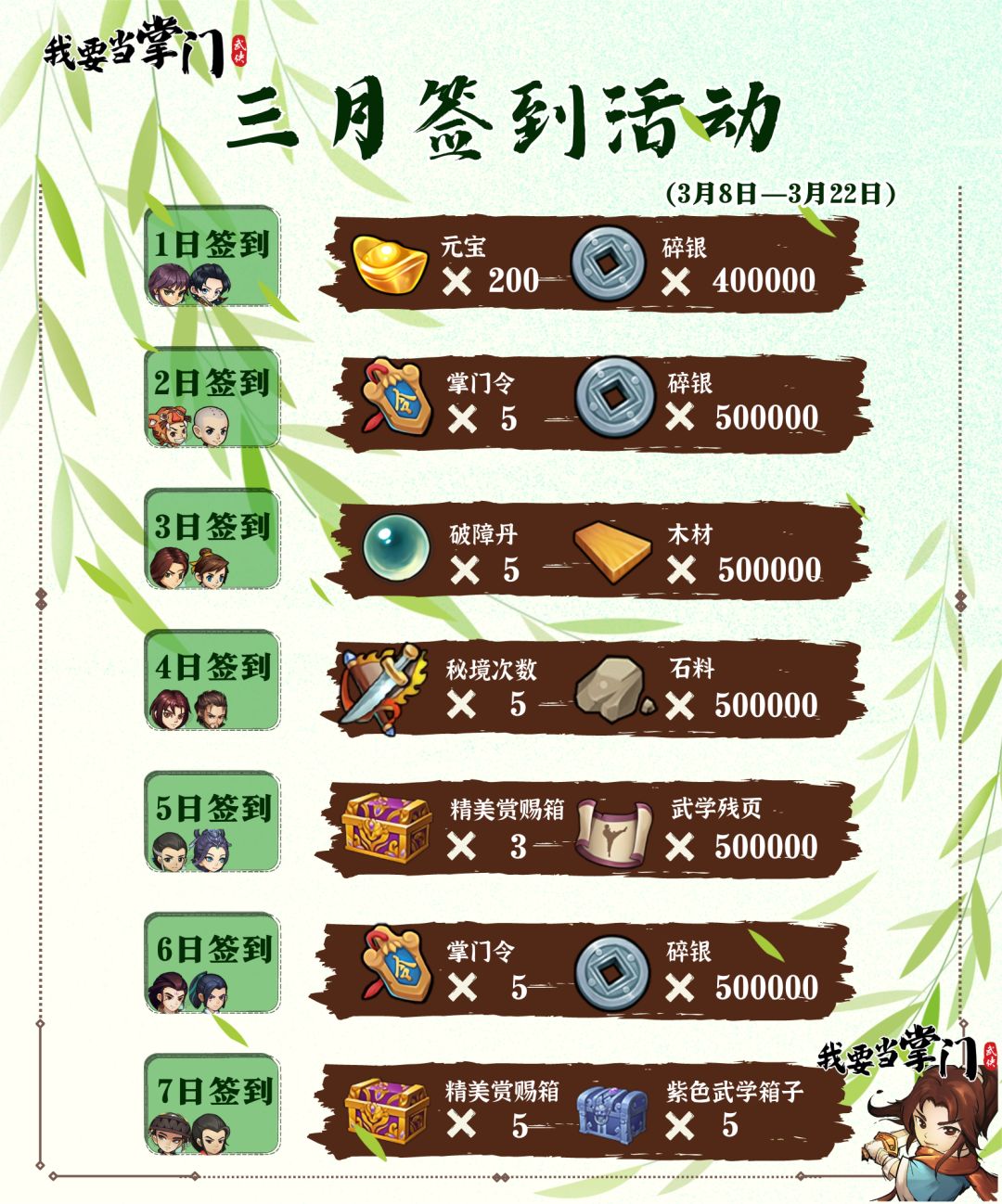 除魔卫道限时活动已开启!参与《我要当掌门》TapTap专属三月天签到活动,领取掌门令、秘境次数、破障丹、紫色武学箱子、精美礼物箱......多重好礼等你来拿(✪ω✪)