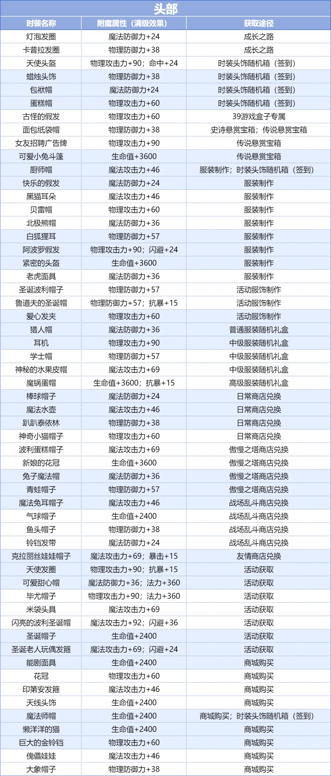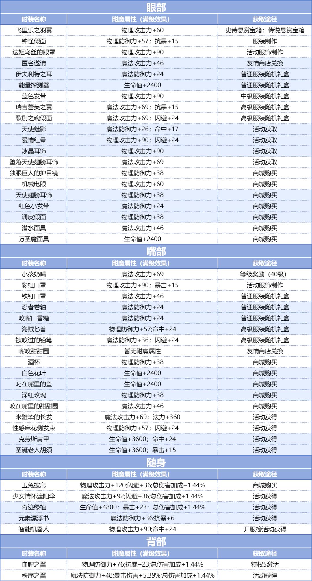 「时装附魔」属性总览