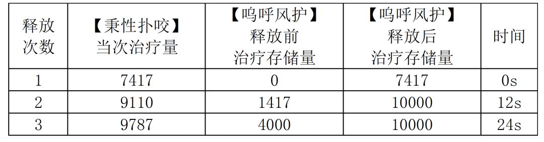 支援技能【秉性扑咬】提供治疗效果,为武器镭射风虎的【呜呼风护】充能,实现攻击力buff。