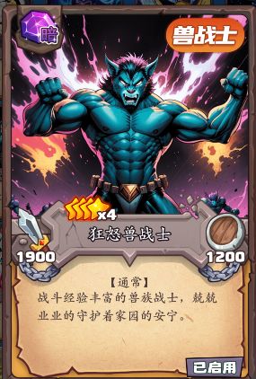 这张卡我觉的不需要多少什么,既然大家都看到进阶教程了,相信大家都体验到了这张卡。举例:该玩家先手,且拥有恶魔必胜之斧,该玩家拥有1400攻击力怪兽,装备这样1000攻击力的斧头,威胁力多大不用多说了吧,那要是先上场1900狂怒兽战士呢?