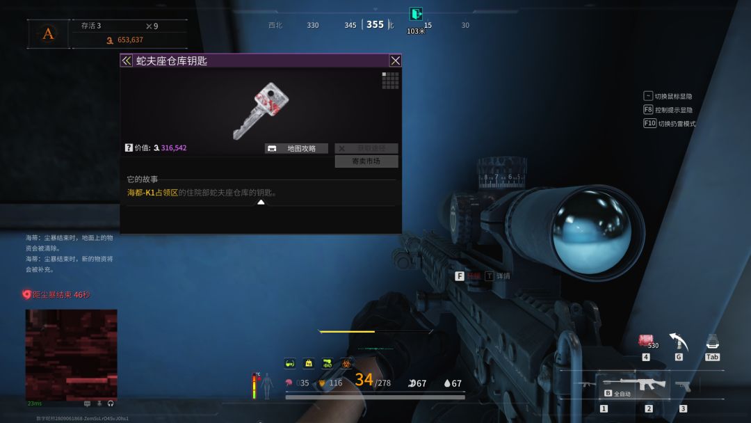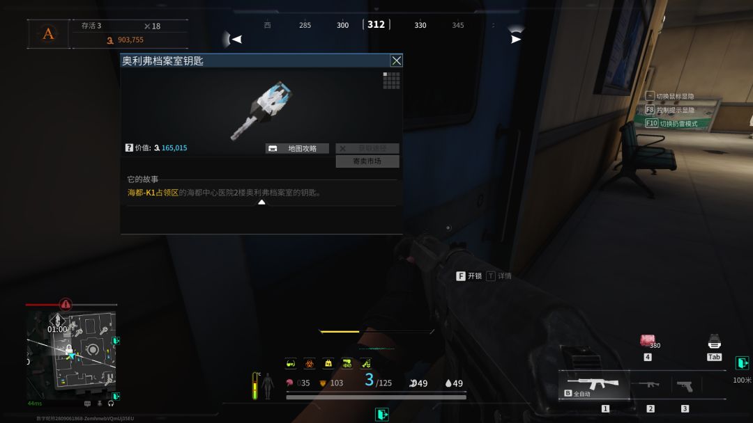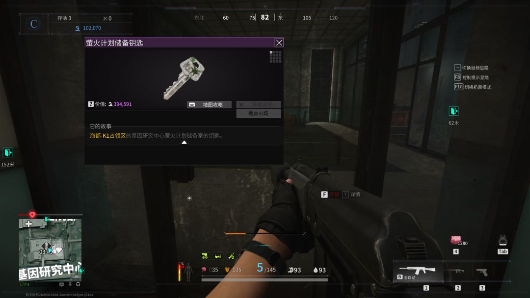 然后我们来到基因研究中心,这个萤火计划储备钥匙里面都是武器,有1~3个保险箱,这个房间主要是开保险箱的,钥匙比较贵,可以不开。