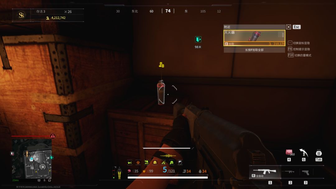 同样2楼军备库这个房间出灭火器概率挺高,可以透一下看看。