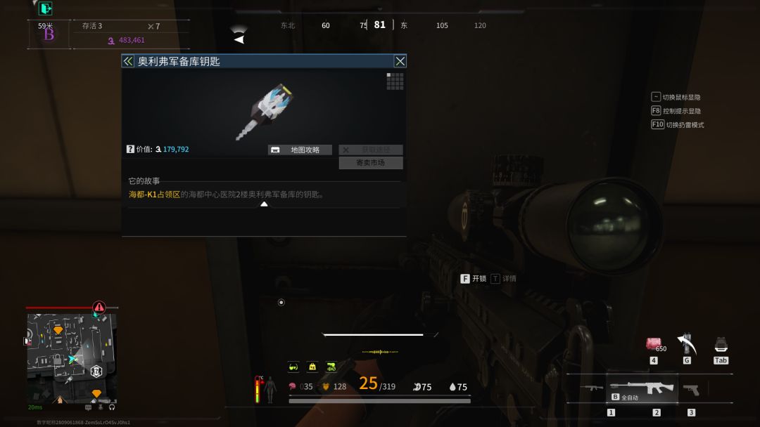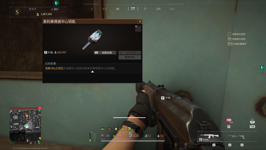 在准备进入战斗之前,需要了解需要购买携带哪些钥匙,海都K1占领区一共有9把钥匙,1张门卡,可以在地图上摸衣服获得或者直接从寄卖市场购入。