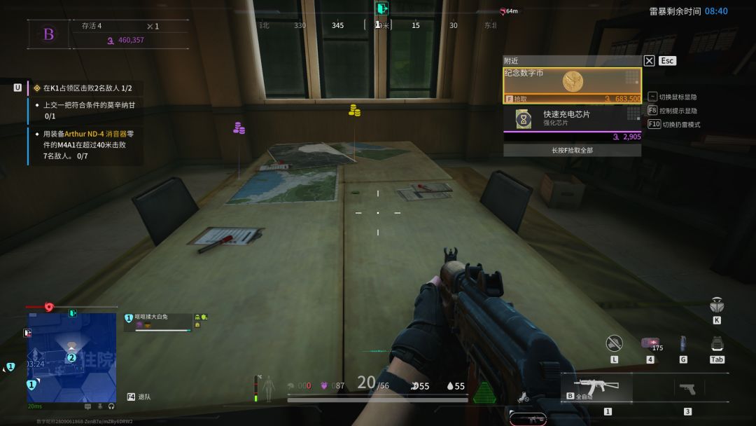 先来到1L情报中心,这里桌子下可能刷币子,用红点透一下,我脸黑好几把都没开出来。
