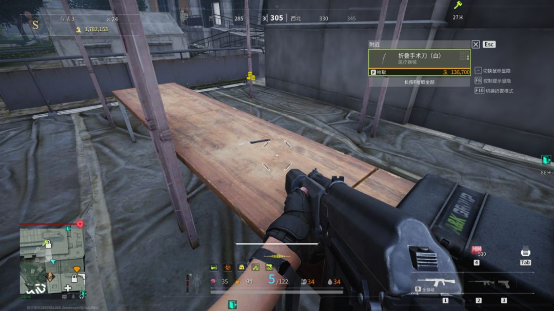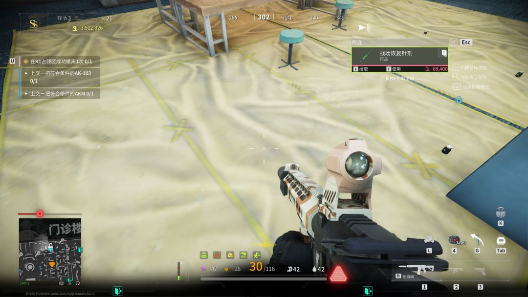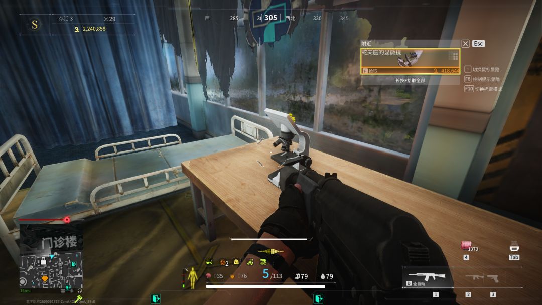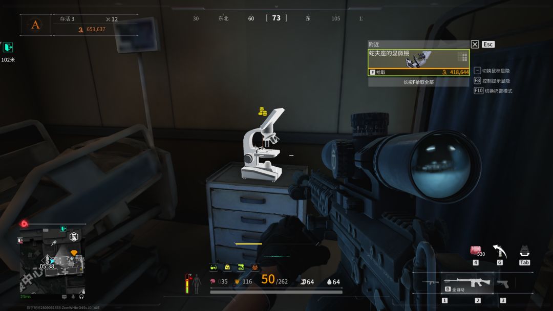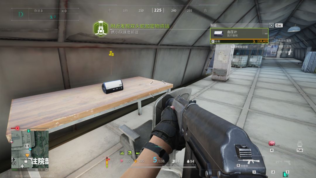最后说一下医院路上这个大棚里,会刷血压计显微镜等,外边桌子会刷小金,箱子会刷高级武器。