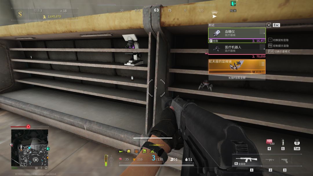 1L最西北侧的货架房非常容易刷显微镜,一次甚至可以刷2个,是重点搜索的房间。