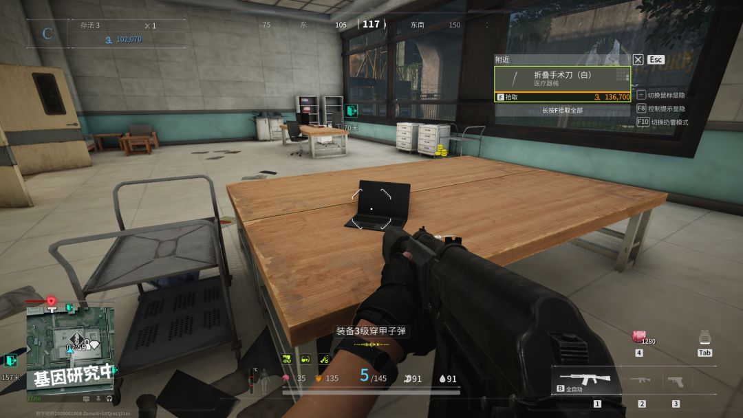 基因研究中心会刷许多武器,保险箱,也会刷小金。