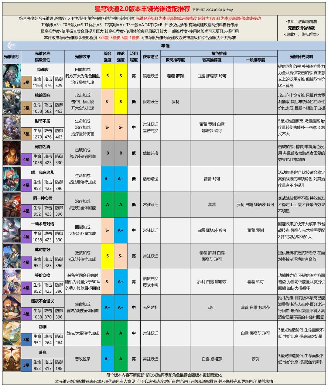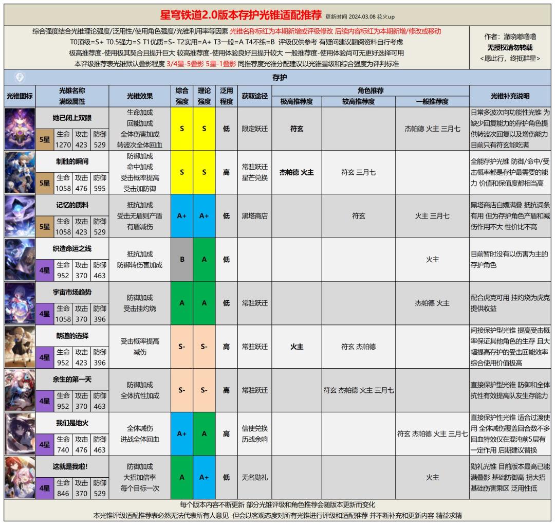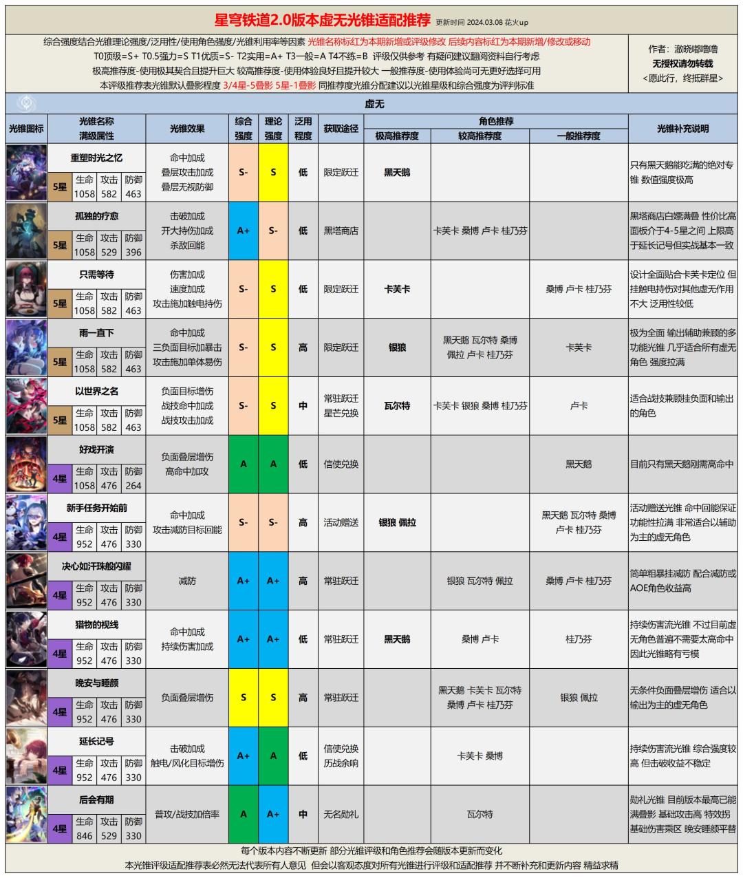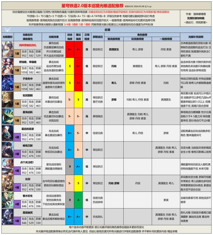 版本不断更新,环境不断变化,任何光锥的评级和适配角色都有可能发生变化,未来本系列攻略也会随版本持续更新,为各位带来最直观最有效的游戏攻略。