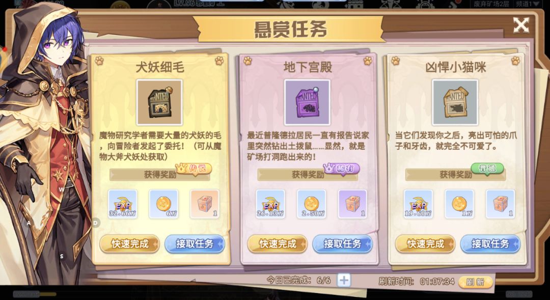 每天,玩家可以接取悬赏任务的次数为6次,如果这些次数用完了,就需要等待第二天进行重置。如果玩家觉得自己接取的任务不理想,也可以通过点击游戏界面左下角的按钮来刷新任务,以获得更符合期望的任务。这项日常任务的设计,使得玩家每天都有具有挑战性的任务可以完成,同时也能够获得丰厚的奖励。这不仅为游戏增添了丰富的内容,同时也为玩家提供了持续的动力和乐趣,值得玩家们在游戏中积极参与。