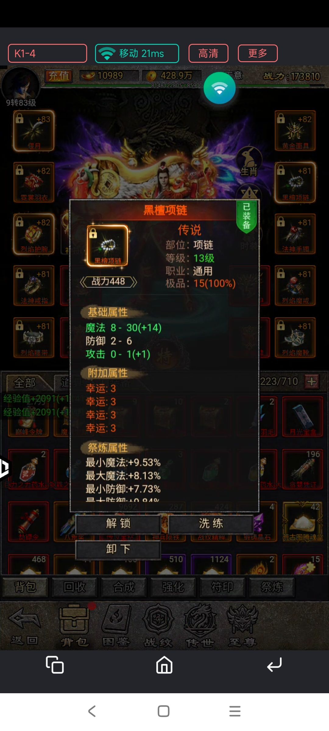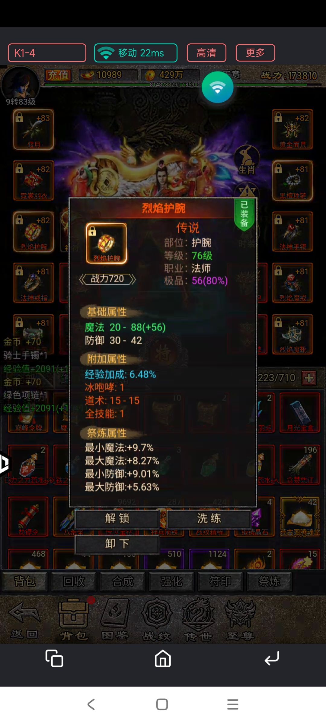 5关于装备:前期装备只需要洗练30级以内的装备,洗练出全技能+单技能+经验加成。