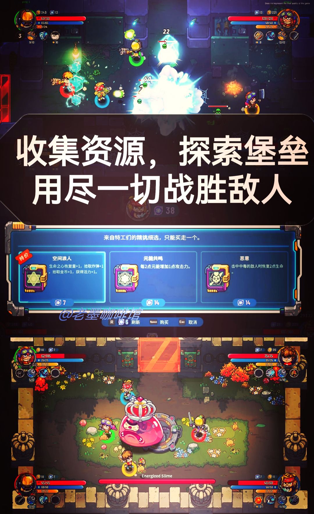 游戏中,玩家将在随机生成的危险世界中收集资源、探索堡垒,用各式各样神奇的武器战胜凶残的怪物和Boss。