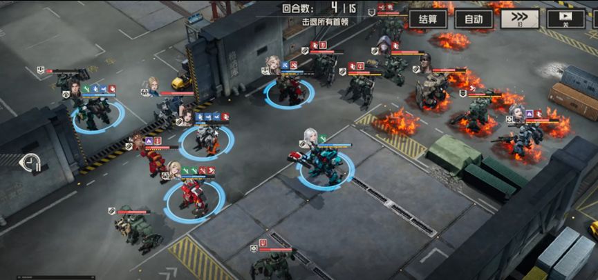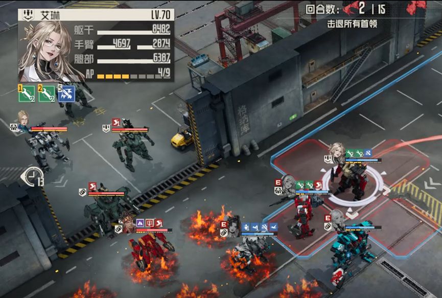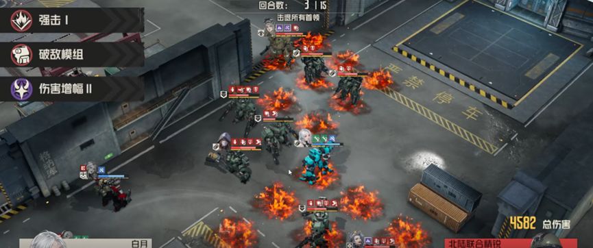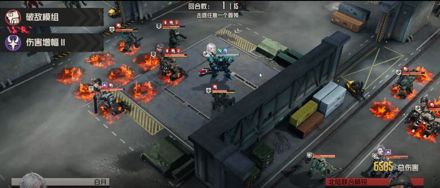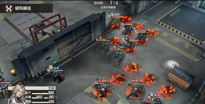 开拓者给buff,一定要给到白月,艾琳燃烧地形第一发打电磁炮boss,第二发打右边敌人