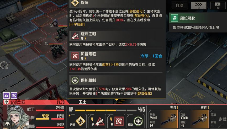 特点是血量和攻击都非常高,没有特别复杂的机制,需要注意的是临时耐久,不在最低耐久条件的判定范围内,如果有部位为最低耐久,但是比临时耐久高,那么属于最低耐久