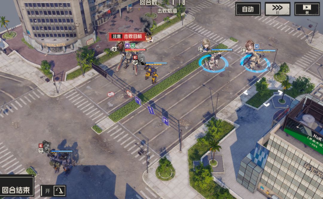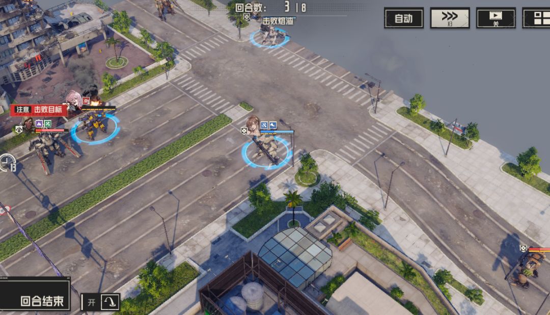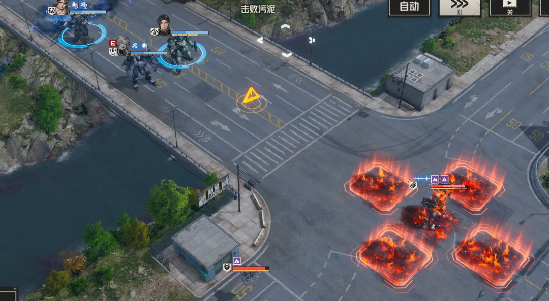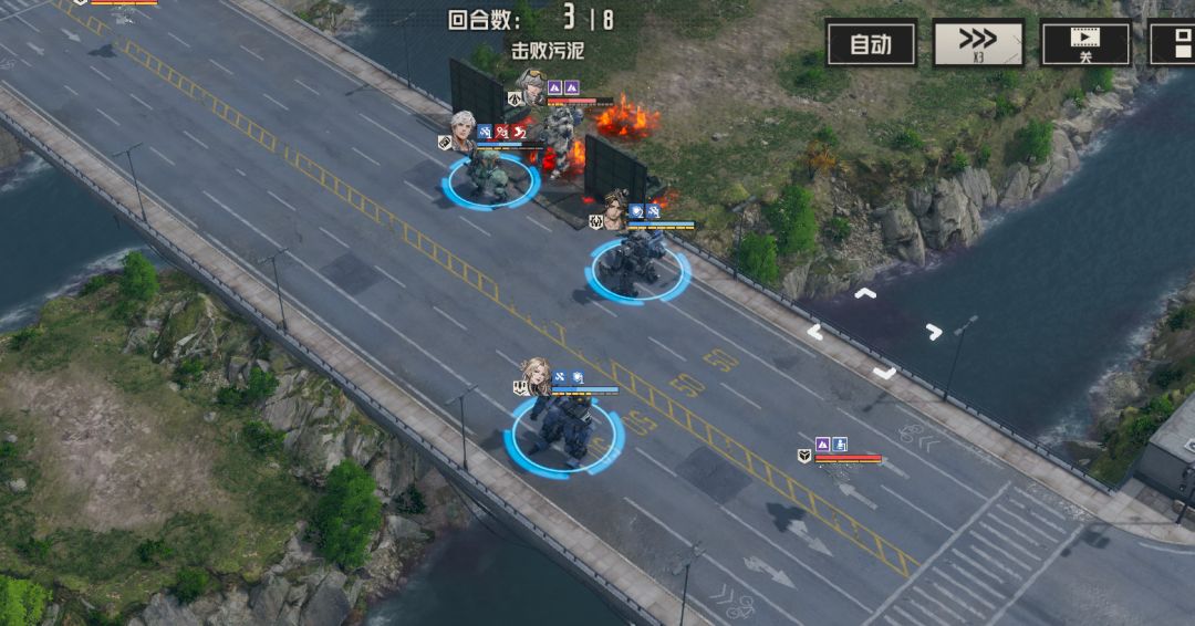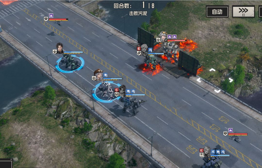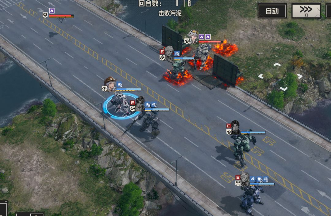 艾琳破下面无人机隐身,再往支援机兵脚下铺火,马库斯过去收掉无人机再攻击支援机兵