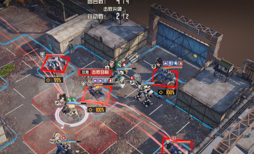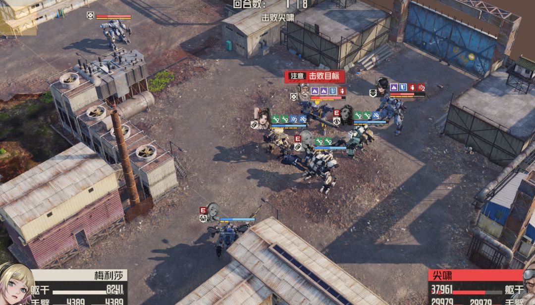 凯瑟琳在boss前面待机,奈奥米于该处精准打击boss躯干(第一回合必定要中躯干,后续不强制,可以直接用爆破)