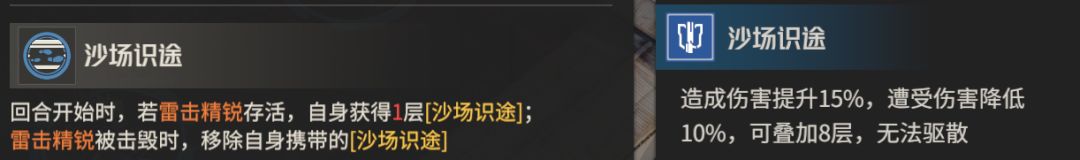 提高boss自身伤害和降低遭受伤害,由旁边头目提供,每回合获得一层,头目被消灭时全部移除,需要合适时机消灭头目,避免boss叠太多buff