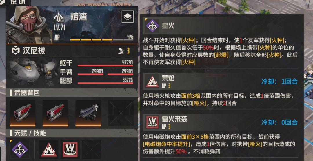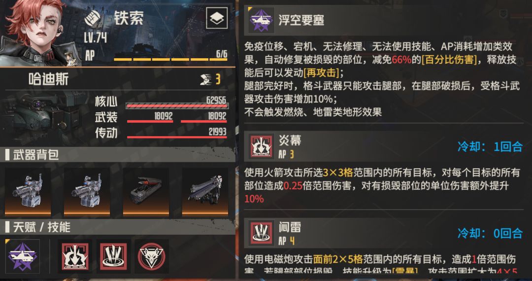 炎幕:火箭技能,跟火箭普通攻击差不多,但是多了对有破损部位的单位的额外伤害提升,一旦有部位破损,就需要小心,总体来看,这个技能伤害并没有太高