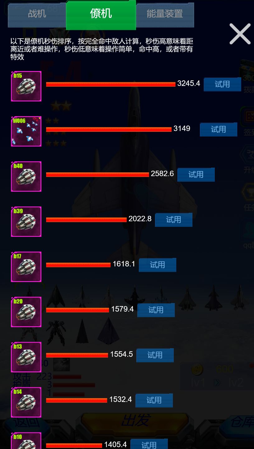 4. 顶级僚机24个,秒伤差距很大,举例说: