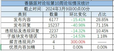 随着时间的推移,我们迎来了香肠派对论坛第10周的结束。在此,我们对本周论坛的各项数据进行了统计,并向大家汇报如下: