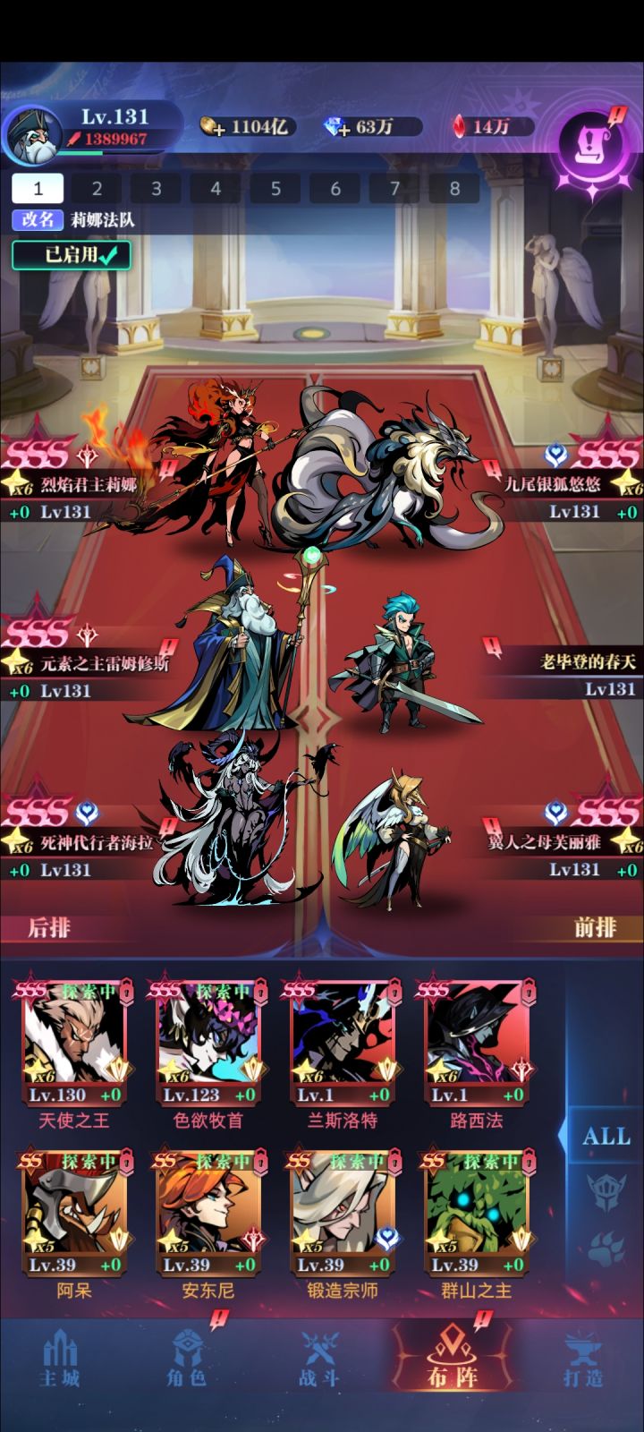 另外,我区的一个好友,与我同一天买的初始号,他第一天在无神器情况下能推到18图,开完色域神器就已经快推到毕业了,第六天开完亚瑟神器直接推图毕业,应该算是目前0转初始号推图最快记录。01转推图还是要正经玩亡灵狮子为主,以海拉元素位辅,才能高效顺利推图。