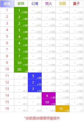 众所周知,很久之前的大佬们已经给出了武装和极限的推荐表,但由于版本更替,紫花果获取途径增加,有些部分已经需要更改。图1 2分别是以前大佬们的推荐表。武装部分基本和现版本(1.27)差别不大,不过12,13阶武装可以考虑2紫代替7蓝,16阶可以考虑1000绿代替10金。极限部分有许多需要更改的地方。我自己做了个推荐表(个人认为性价比高的),看图3。与旧表有区别的阶数已标记出来。(只推荐武装到128的,如8阶可以127.95的不做推荐)