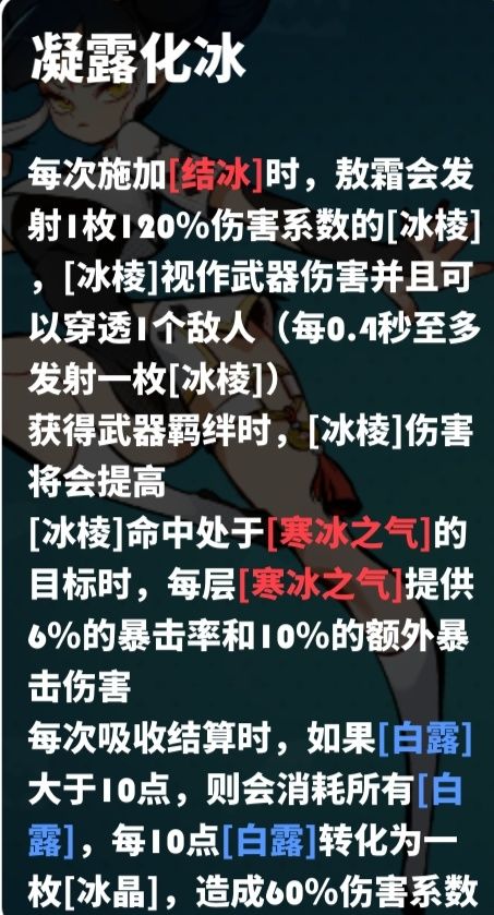 最优解是获得武器相关羁绊,在增加基数的方式增加结冰概率的同时直接提升本身伤害
