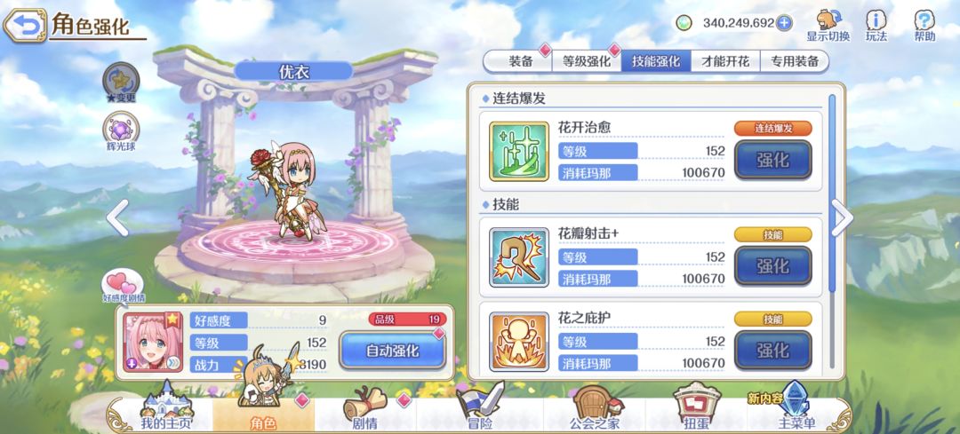 3、开花后收益巨大。这几个角色基本偏向辅助类,技能组覆盖控制、回血、帖盾、加速、TP、物攻魔攻等等,很大程度上缓解了萌新在推图爬塔解放本等开荒环节的生存压力。这些角色就业广泛,从双场挖矿到公会战爬塔不等均可就业且保质期长。