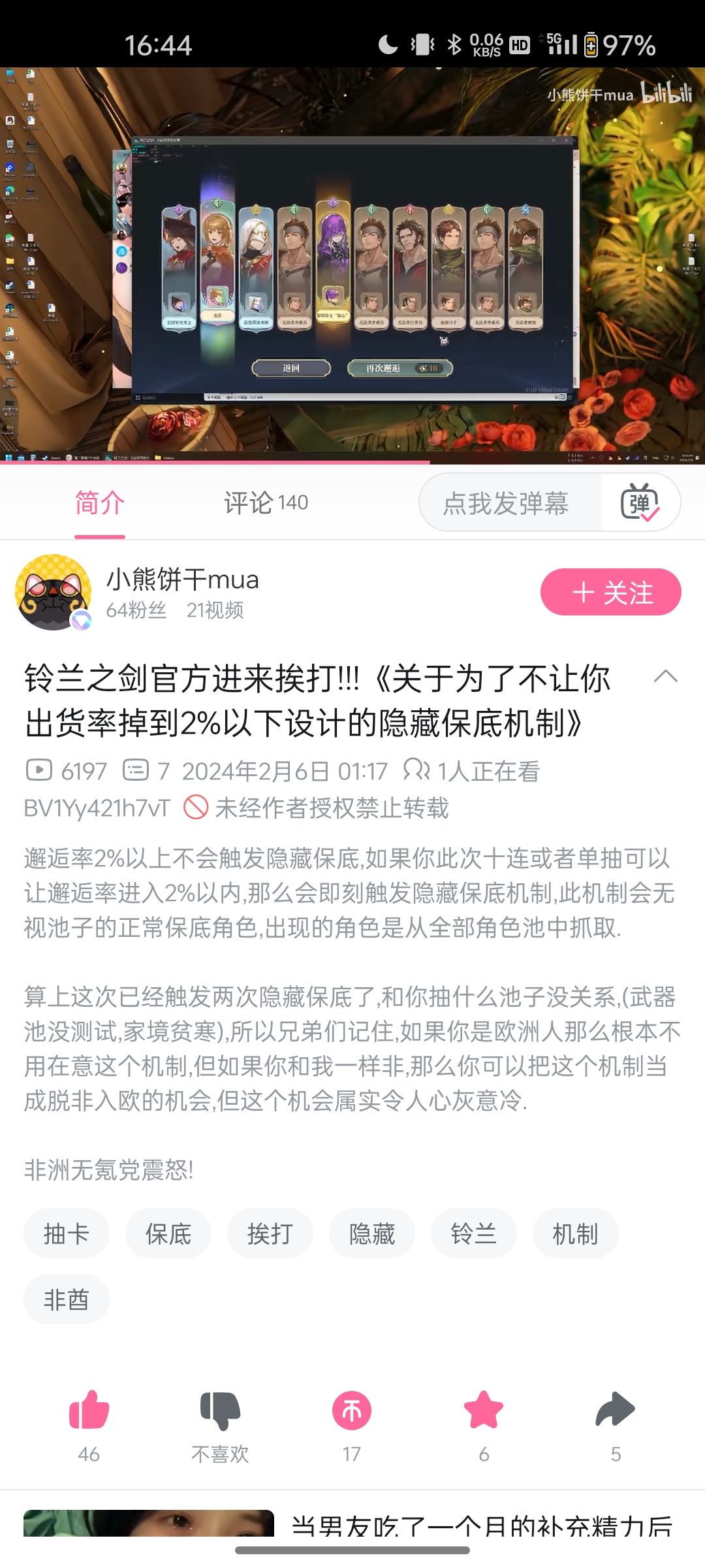 为什么答案是这样呢?锅在铃兰反直觉的保底机制。