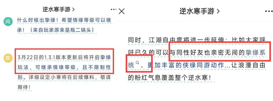 从官方的爆料来看,【挚缘系统】包含两种内容,第一种是同性玩家亲密无间的挚缘玩法,第二种是情缘等级继承玩法。